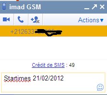 Envoyer un sms ثم نقوم بإدخال رقم الهاتف المحمول إينوي للمرسل إليه